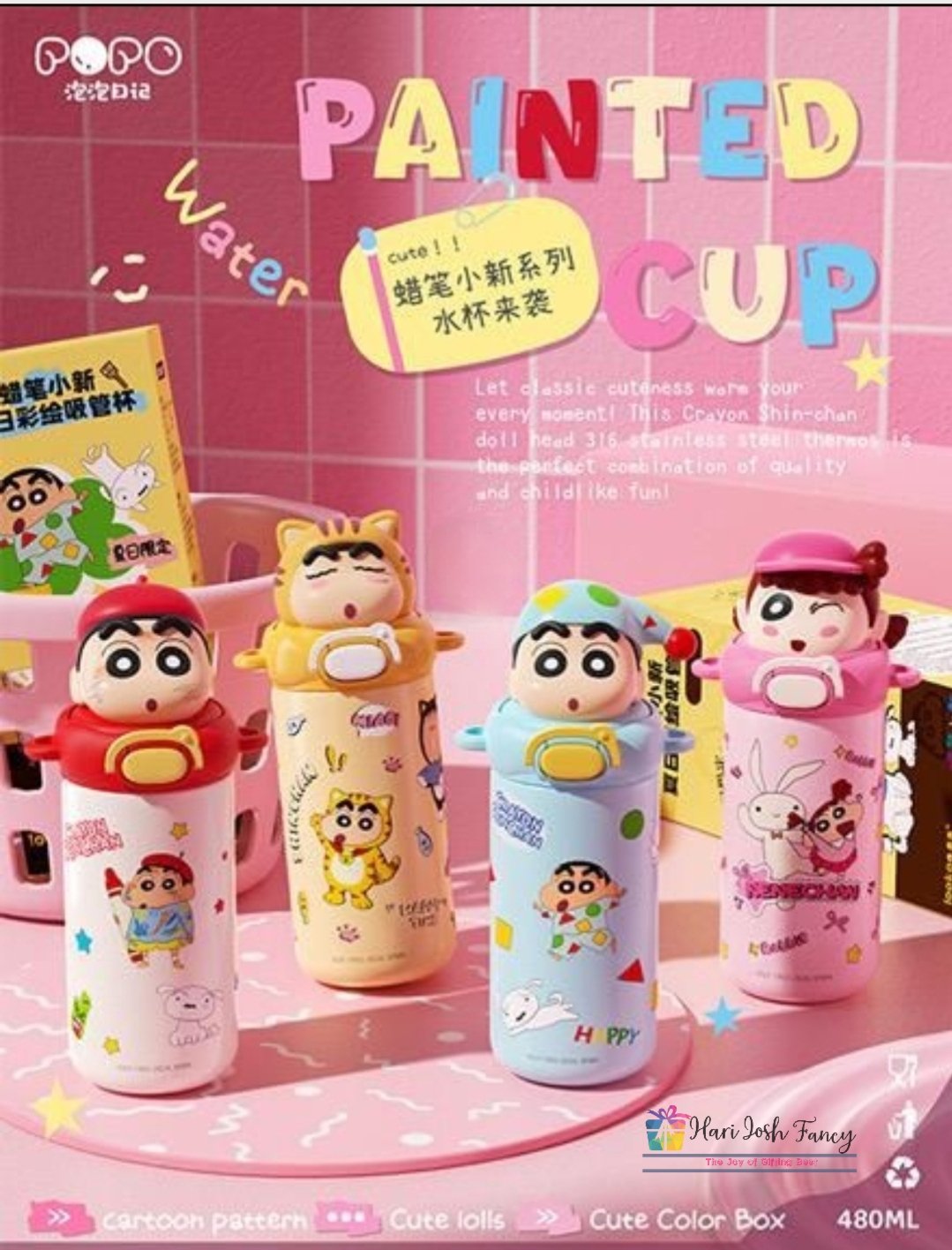500ml Cartoon Printed Dual Mouth Flask