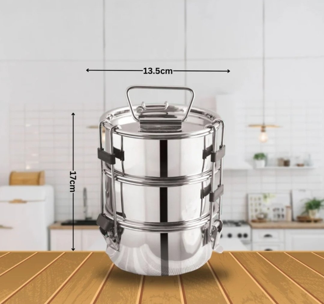 Carry your meals in style with the Falcon 3-layer lunch box, made entirely of high-quality stainless steel for durability and hygiene. Designed with multiple tiers to keep food items neatly separated and fresh. Comes with a convenient carry bag, perfect for school, office, or travel use.