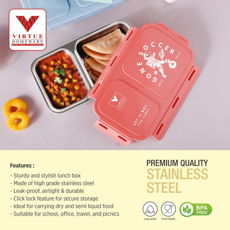 Keep your snacks neatly organized with this partition steel snacks box, made from high-quality stainless steel for durability and hygiene. Designed with separate compartments to prevent mixing of food items. Perfect for school, travel, or everyday use.